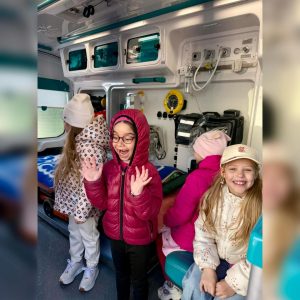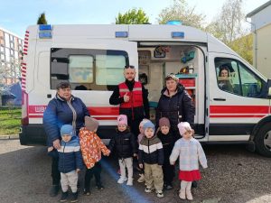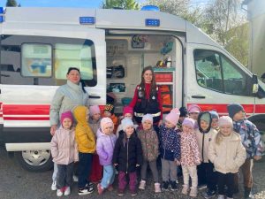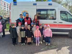 Справжнім захопленням для малечі стала оглядова екскурсія автомобіля екстреної медичної допомоги. Діти мали можливість роздивитися спеціальне обладнання, дізнатися про його призначення та поставити безліч запитань, на які отримали вичерпні відповіді.