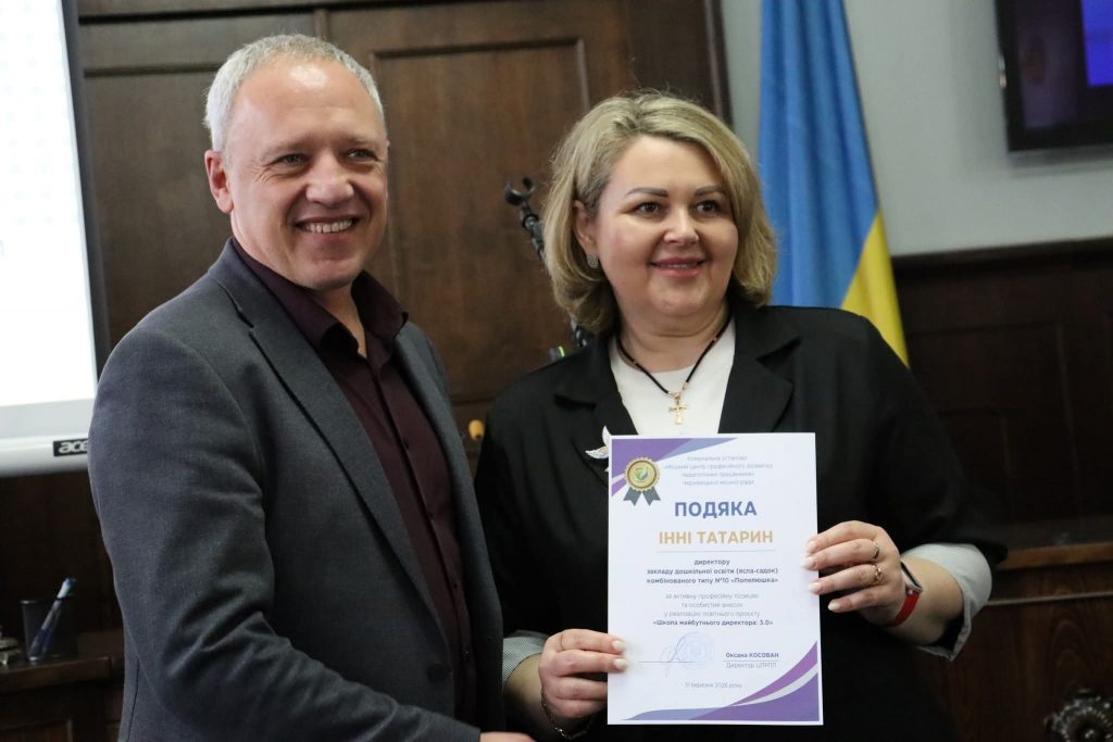 Сьогодні директор нашого закладу дошкільної освіти Інна Татарин отримала подяку за участь у проєкті «Школа майбутнього директора: 3.0» як спікер.